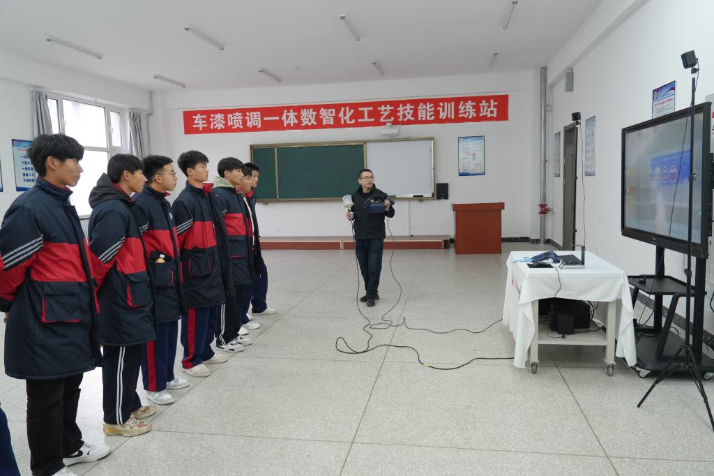本次研学活动设置“特色专业解读、校史馆参观、现场实操体验”等主题活动,机械工程学院智能焊接技术专业带头人李文韬、数字化设计与制造专业带头人张丹、现代服务学院高铁乘务专业带头人吴曦、汽车工程学院汽车服务与营销专业带头人王鑫分别作专业介绍,重点向研学师生介绍了我校在人才培养、专业建设、实习实训等方面的特色与成果。
