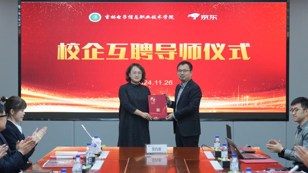 财经学院院长吕岩荣与京东物流集团教育业务部吉林省区经理贺宇代表校企双方郑重签订合作协议,共同开启数字商业教育的新篇章。